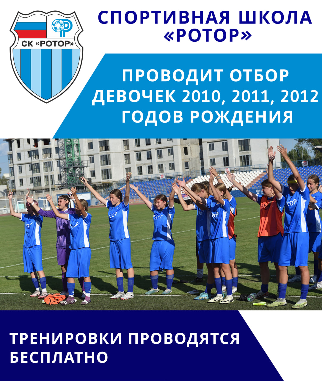 ⚽️👧 «Спортивная школа «Ротор» проводит отбор девочек для занятий футболом