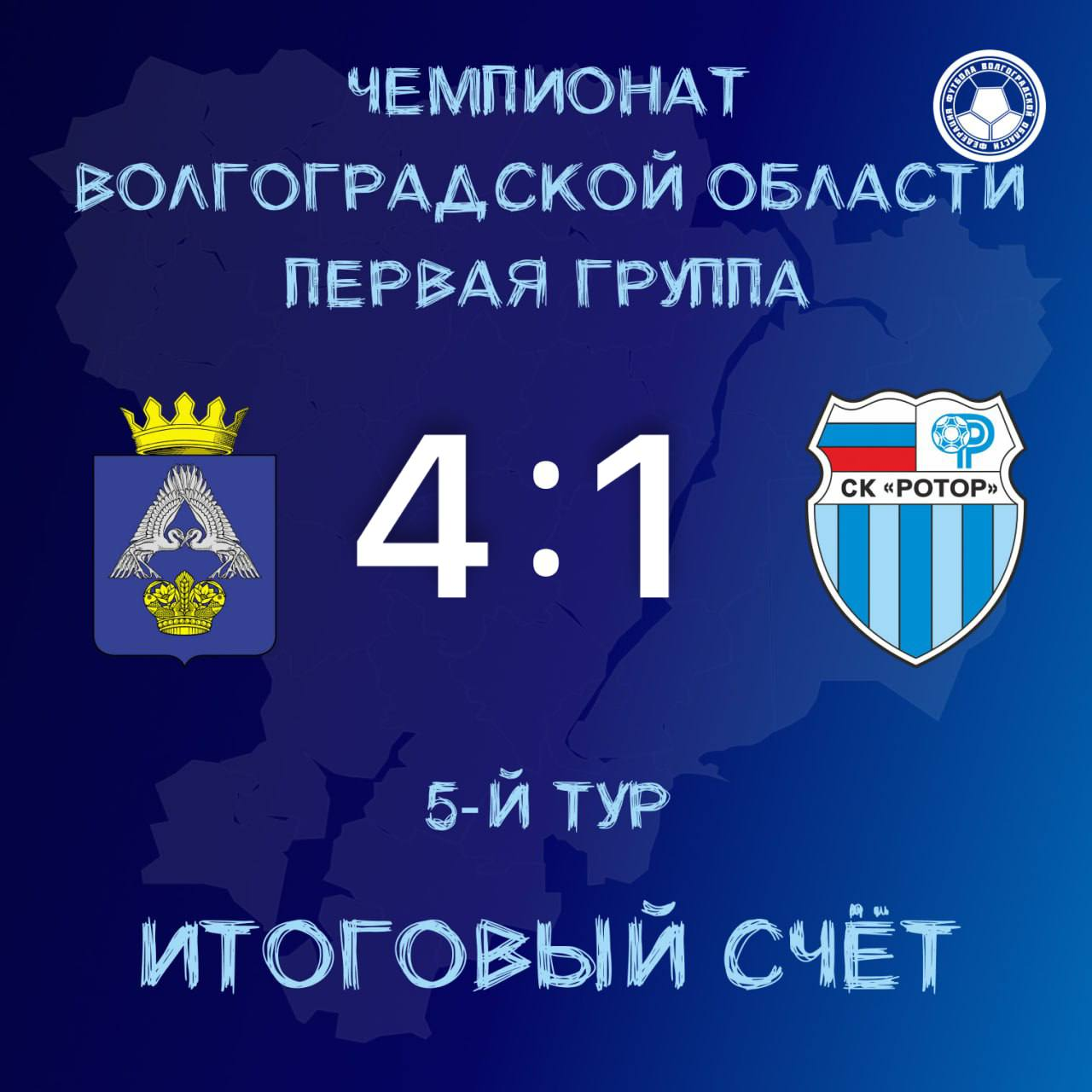 Команда СШ «Ротор»-2008 в 5-м туре чемпионата Волгоградской области (первая группа) в гостях встречалась с «Ахтубой». Матч, состоявшийся в Средней Ахтубе, завершился проигрышем «сине-голубых» со счётом 1:4. Мяч забил Талгат Ералиев.